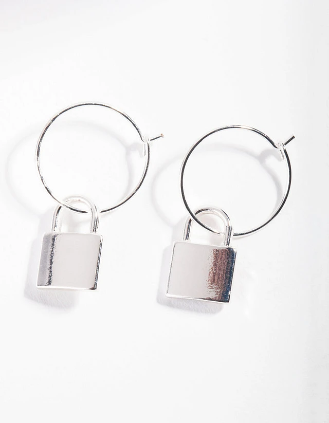 Silver Padlock Fine Hoop Earrings