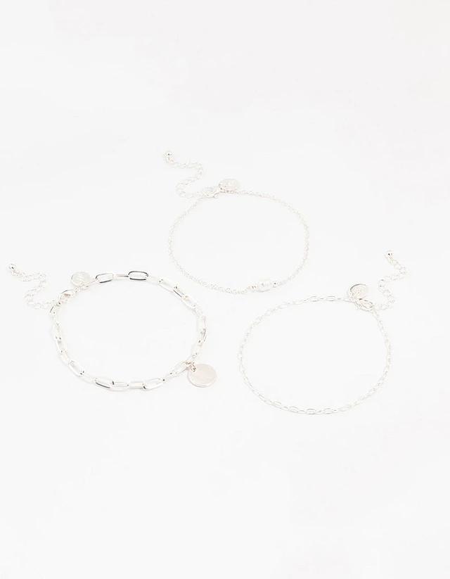Silver Pearl Disc Drop Anklets 3-Pack