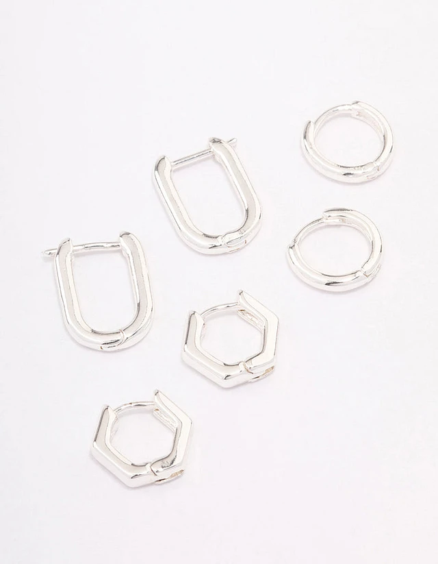 Silver Plated Brass Hexagon Hoop Earrings Pack
