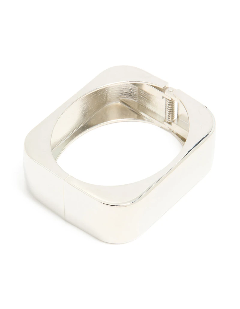 Silver Statement Rectangle Hinged Bangle