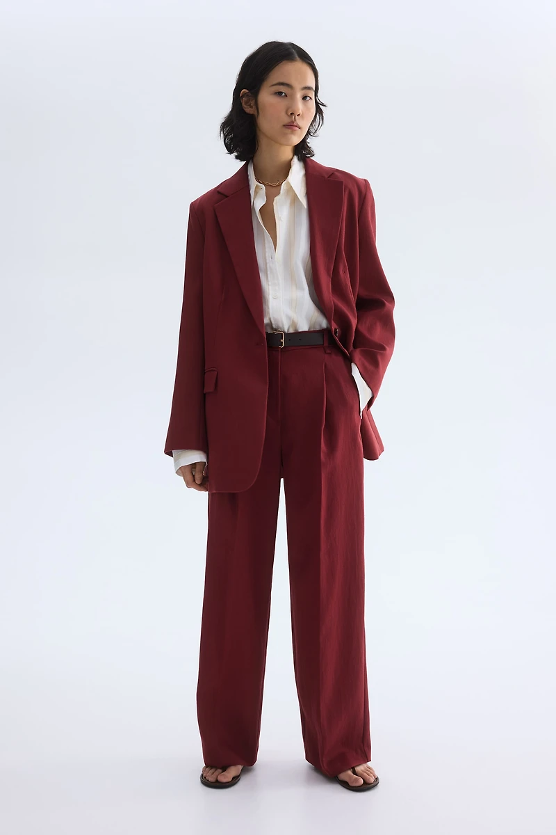 Single-breasted blazer in woven fabric. Notched lapels, shoulder pads, a button at front, and welt front pockets with flap. Lined.