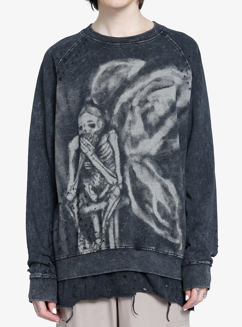 Skeleton Angel Destructed Sweatshirt