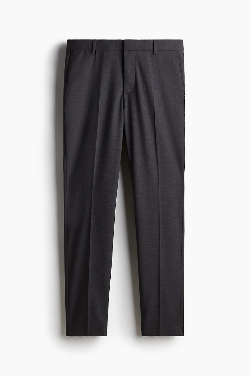 Skinny-fit suit pants in soft, woven fabric with a fitted silhouette. Zip fly with concealed hook-and-eye fastener. Side pockets, welt back pockets, and legs with creases.