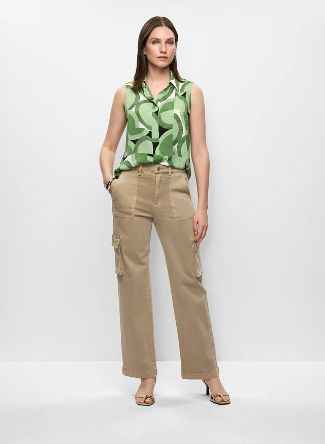 Sleeveless Geometric Print Blouse & Wide Leg Cargo Jeans