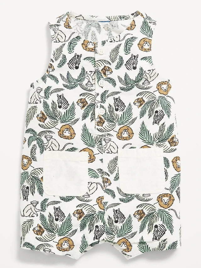 Sleeveless Linen-Blend Henley One-Piece Romper for Baby