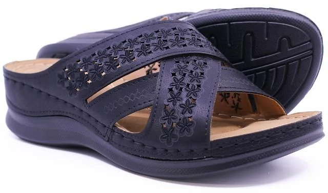 Slide Black Brown Double Strap Sandal