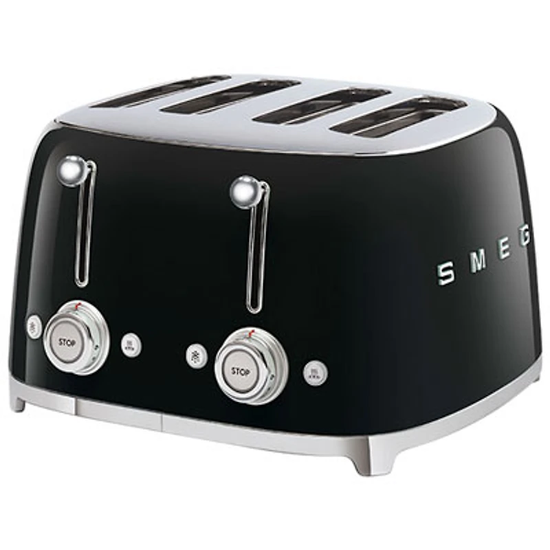 Add a hint of mid-century flair to your countertop with the Smeg 50's Style retro toaster. Boasting a classic 1950s-inspired 4-slice design, it's ideal for toasting up bread, English muffins, bagels, and more. It's equipped with 6 browning levels for toasting perfection and 3 preset functions for quick and easy operation. | Smeg 50's Style Retro Toaster - 4-Slice - Black