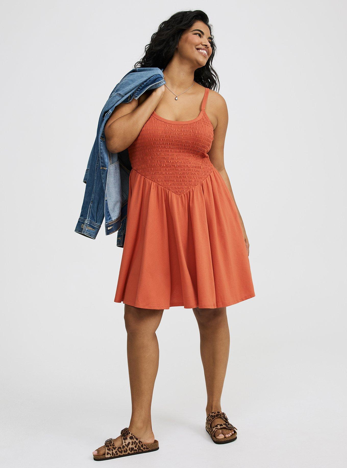 FIT Measures 39'' from shoulder (size 2). MATERIALS + CARE Cotton knit fabric. 100% Heritage cotton. Machine wash cold. Line dry. Imported. DETAILS Scoop neckline. Sleeveless. Dipped waist. Smocked bust. Functional pockets. Adjustable straps.