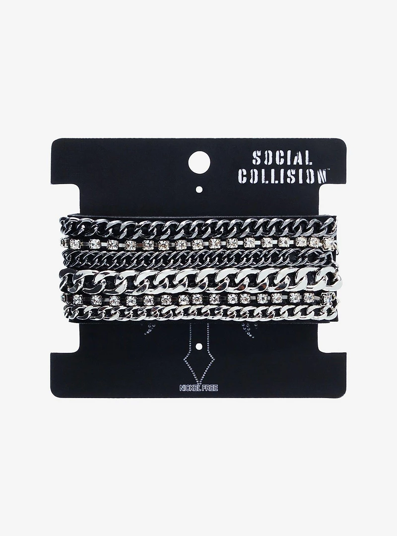 Social Collision Multi Chain Faux Leather Cuff