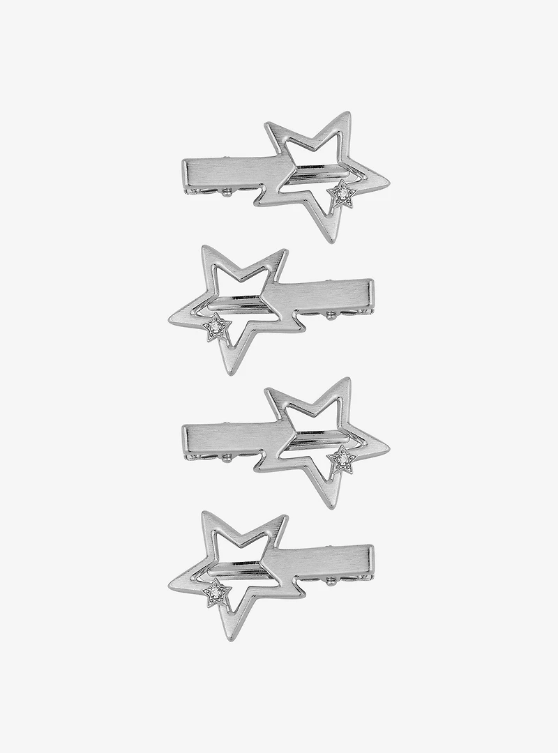 Sparkle with this hair clip set shaped like stars with mini jeweled star detail.