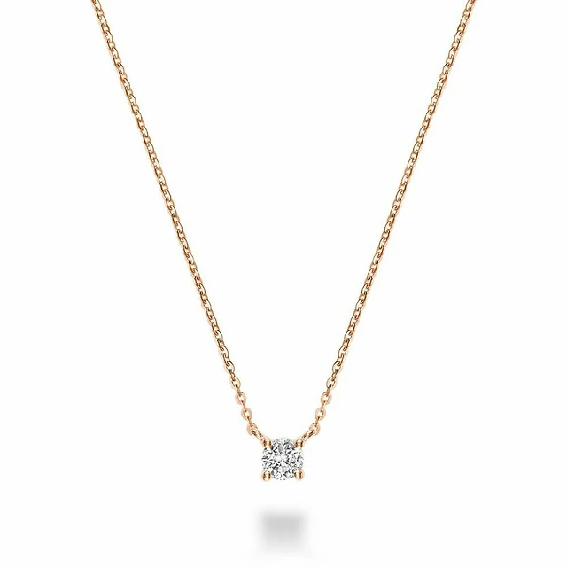 Solitaire Diamond Necklace 0.13CTDI Rose Gold