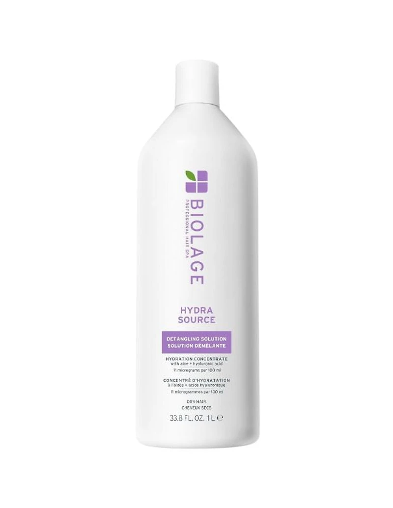 Solution démêlante Hydra Source pour un démêlage instantané et une hydratation légère.