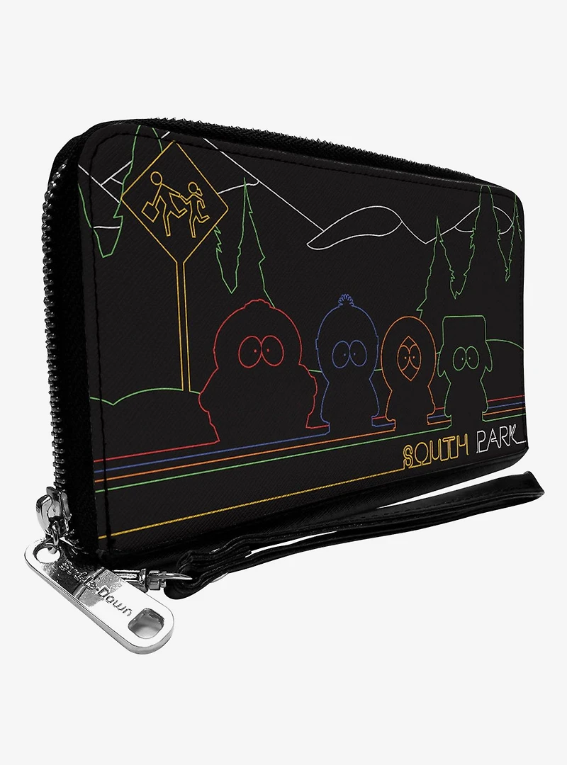 South Park Boys At Bus Line Silhouette Zip Around Wallet