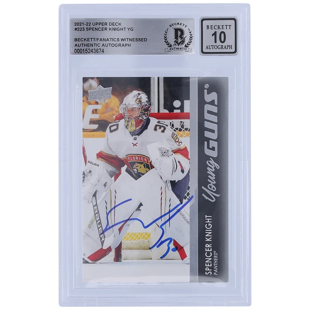 Spencer Knight Florida Panthers Autographed 2021-22 Upper Deck Young Guns #223 Beckett Fanatics Witnessed Authenticated 10 Rookie Card