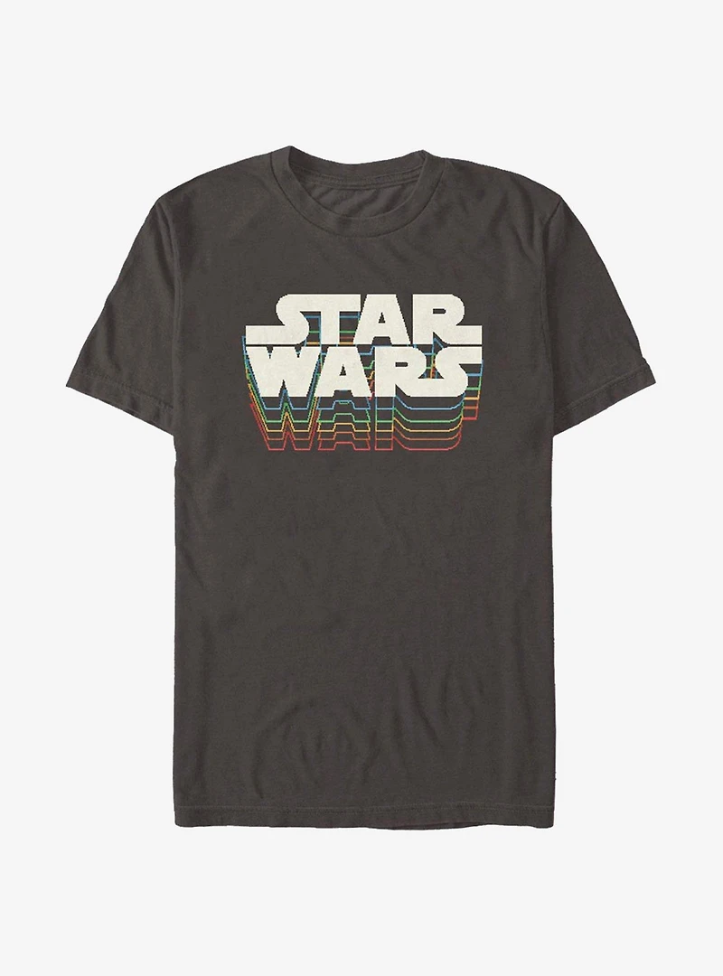 From a long time ago makes it oh-so-retro! This lightweight tee features the classic Star Wars logo in white -- with repeated logos in blue, green, yellow, orange and red trailing behind.