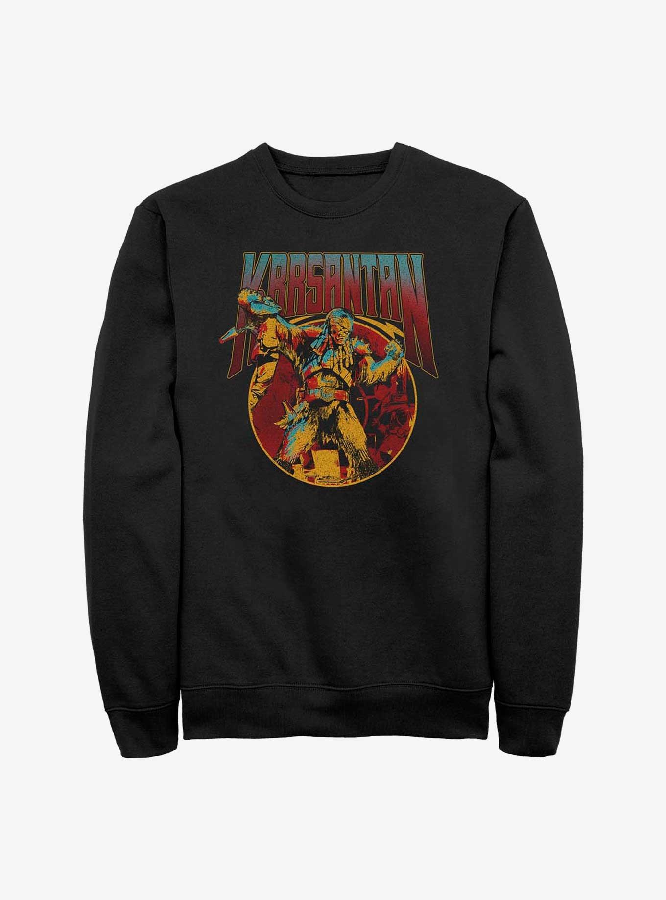 Scugholes, beware! This black crewneck sweatshirt -- inspired by the Disney+ series Star Wars: The Book of Boba Fett -- features powerful Wookiee Black Krrsantan.