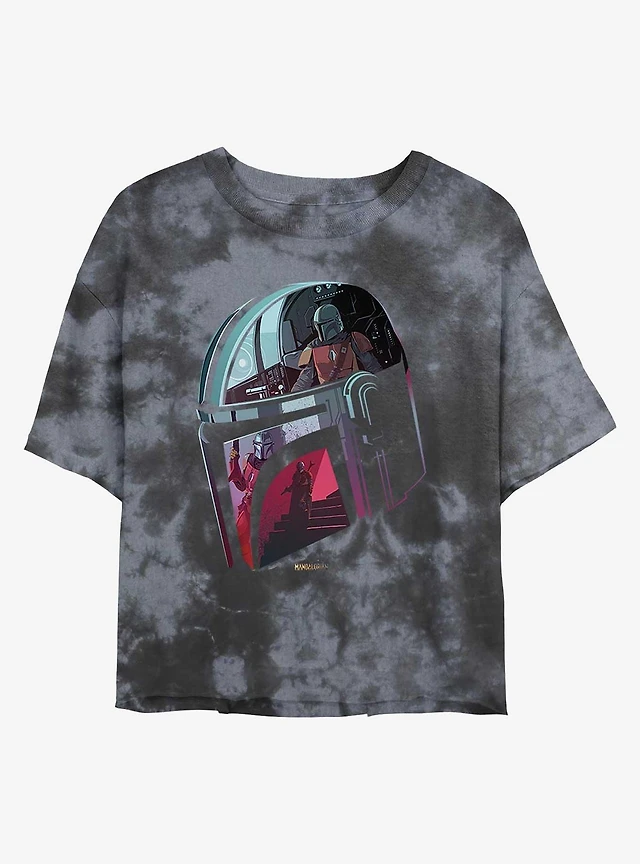 Star Wars The Mandalorian Helmet Scenes Tie-Dye Girls Crop T-Shirt