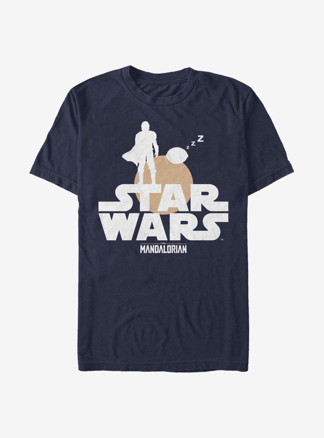 Zzz. Grogu, AKA The Child, snoozes next to Din Djarin on this extra soft, lightweight tee inspired by the Disney+ series Star Wars: The Mandalorian .