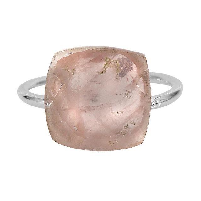 Sterling Silver, 12X12mm Rose Quartz Ring, 1.5mm Round Band