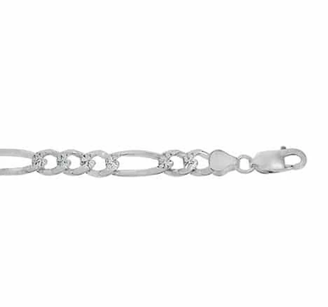 Sterling Silver, 5.6mm Diamond Cut Pave Figaro Chain