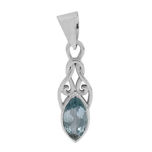 Sterling Silver, 6X12mm Blue Topaz Pendant