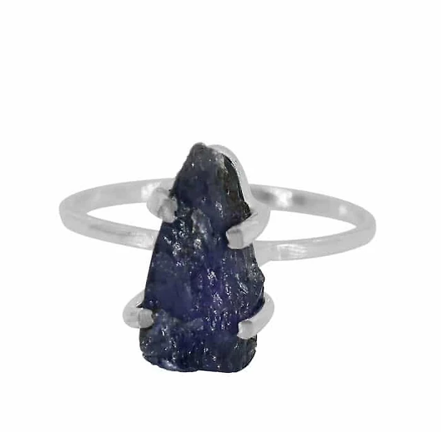 Sterling Silver, 6X13mm Rough Blue Sapphire Ring, 2mm Band
