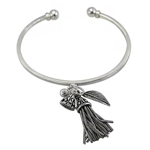 Sterling Silver Charm Bangle, 63X53mm Outer Diameter, 2X2mm Square Band