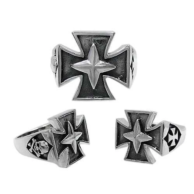 Sterling Silver Cross Ring With Skull, 20mm Frame