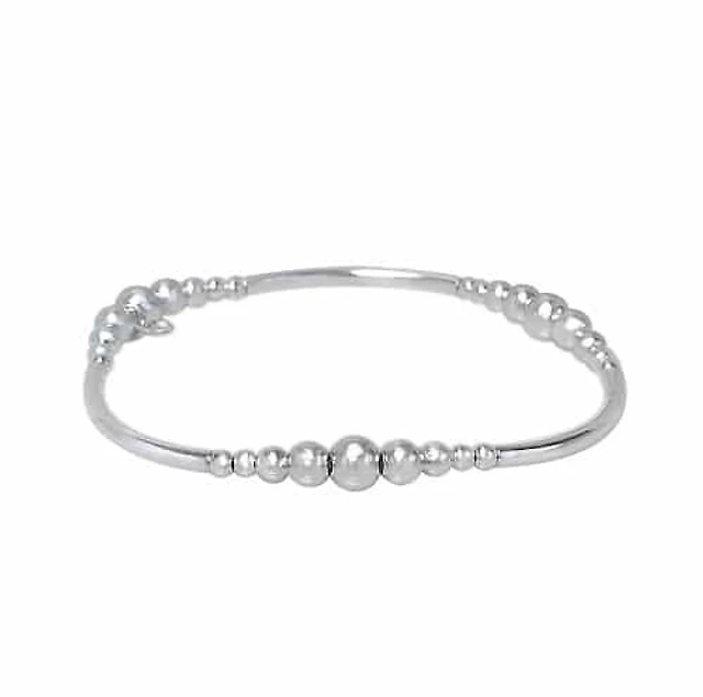 Sterling Silver, Elastic Bracelet With 3-6mm Ball Bead, 2X29mm Tube