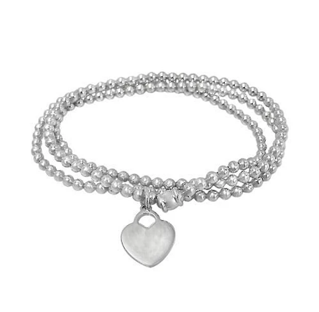 Sterling Silver, Elastic Bracelet With 3mm Ball Bead And 15X12mm Heart Charm