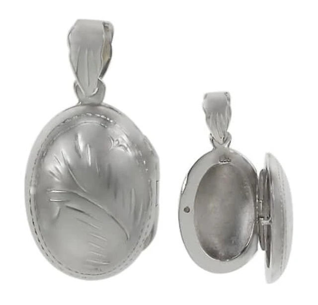 Sterling Silver, Engraved Oval Locket. (Locket13) (Locket14) (Locket15) (Locket16)
