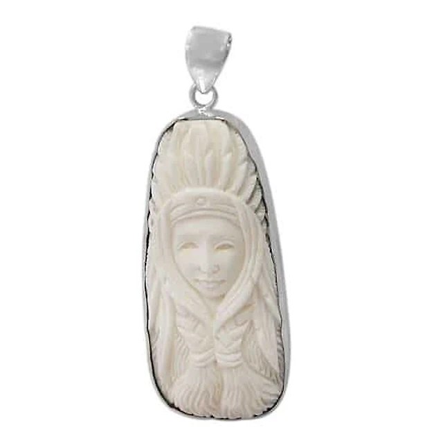 Sterling Silver, Free Shape Stone Pendant With A Carved Image Of A Woman, 55X25mm (Bone).
