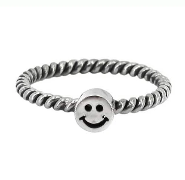 Sterling Silver Happy Face Ring, 5mm Width