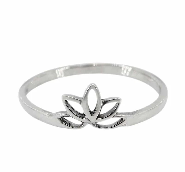 Sterling Silver, Lotus Flower Ring, 8X6Mm, 2mm Band