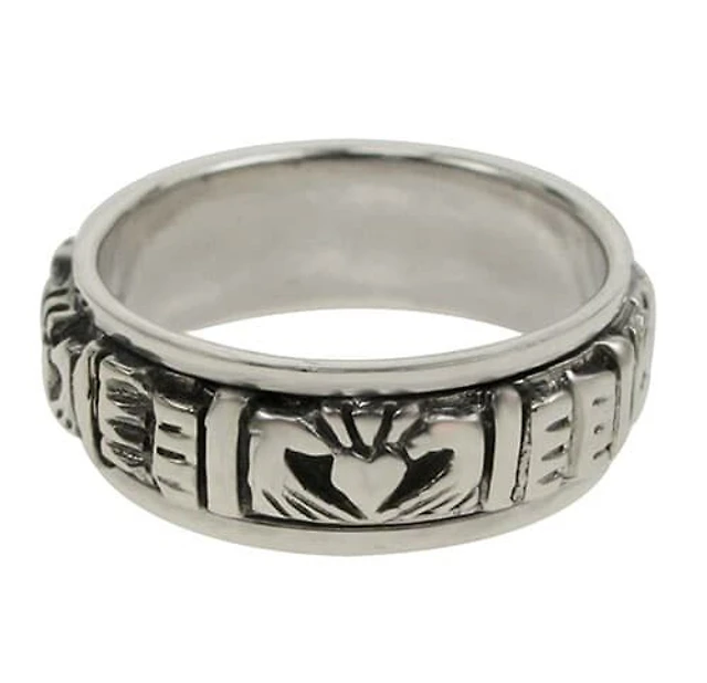 Sterling Silver, Smooth Claddagh Spin Ring. Approx Size: 8mm Width