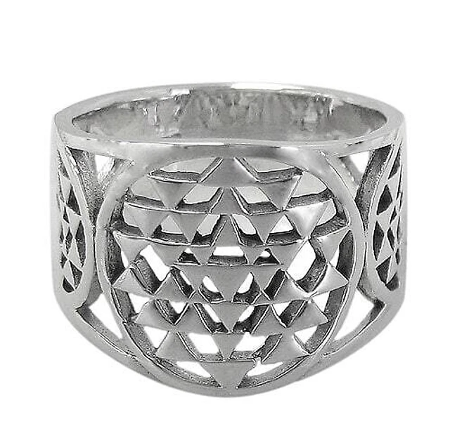 Sterling Silver Sri Yantra Ring, 16mm Width
