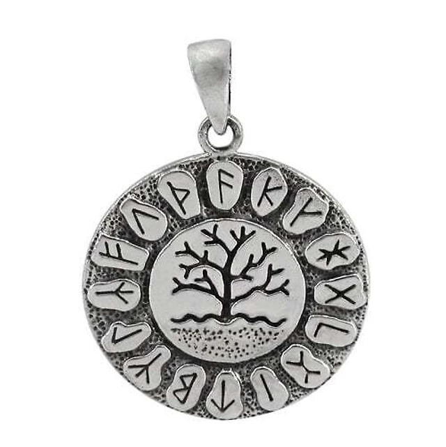 Sterling Silver Viking Tree Of Life Rune Pendant, 28mm Diameter