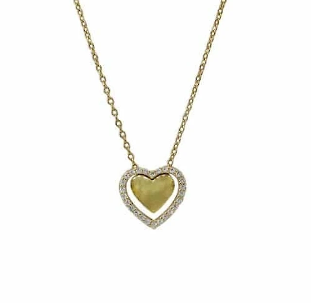 Sterling Silver With Gold, 11X12mm Heart Necklace With Cubic Zirconia