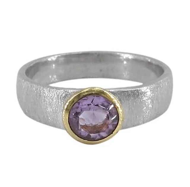 Sterling Silver With Gold, 5mm Stone Ring, 4mm Band