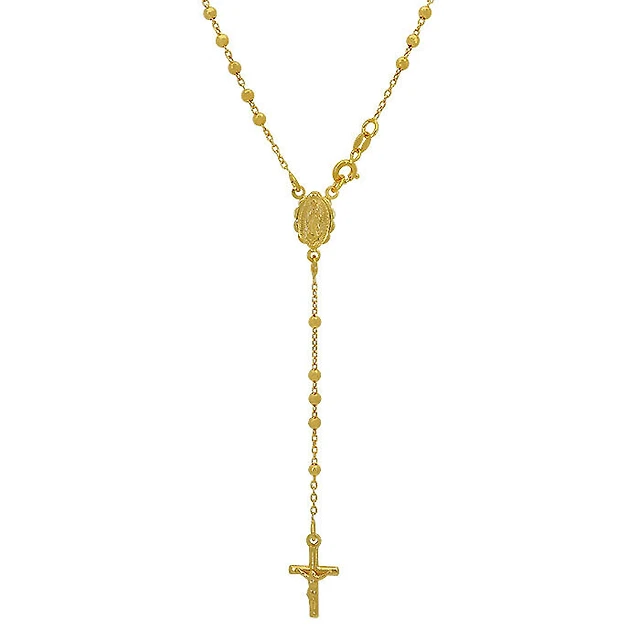Sterling Silver With Gold, Rosary Necklace With 3mm Ball Bead