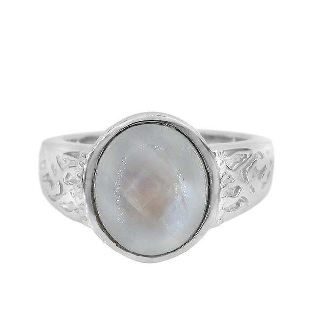 Sterling Silver With Rhodium, 10X13mm Moonstone Ring