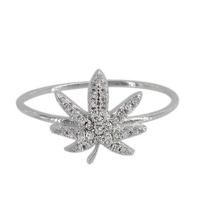 Sterling Silver With Rhodium, 11X12mm Marijuana Leaf Ring, 1mm Band