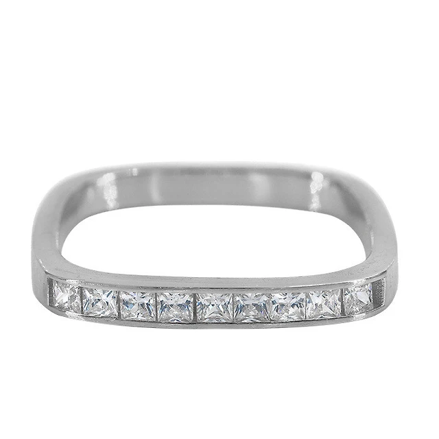 Sterling Silver With Rhodium, 3X3mm Square Cubic Zirconia Ring, 3.5mm Band