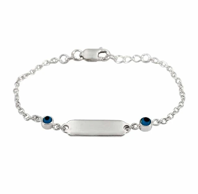 Sterling Silver With Rhodium, 4mm Evil Eye Baby Id Bracelet With 2mm Cable Chain
