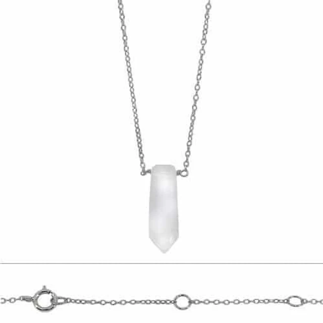 Sterling Silver With Rhodium, 6X22mm Crystal Charm Necklace