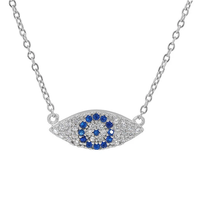 Sterling Silver With Rhodium, 7X16mm Evil Eye Necklace With Cubic Zirconia