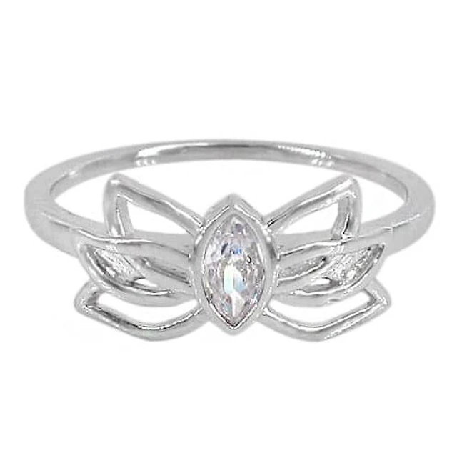 Sterling Silver With Rhodium, 8X16mm Lotus Ring With Cubic Zirconia, 1mm Band
