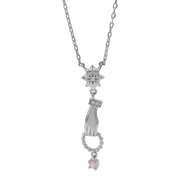 Sterling Silver With Rhodium, 8X31mm Hands Necklace With Cubic Zirconia