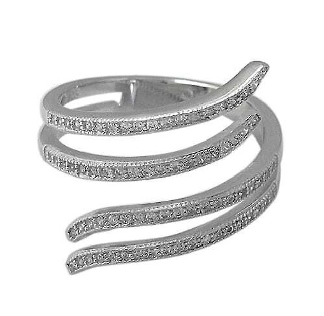 Sterling Silver With Rhodium, Adjustable Double Bar Ring With Cubic Zirconia, 21mm Width