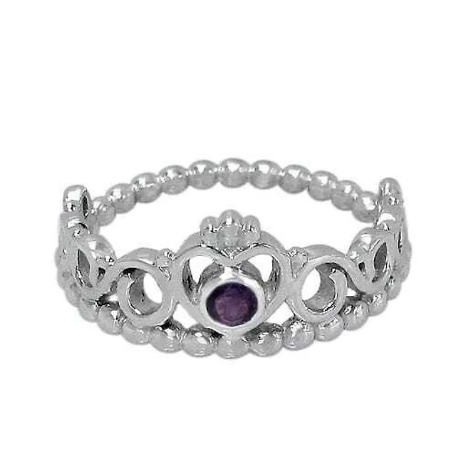 Sterling Silver With Rhodium Crown Style Ring, 3mm Stone